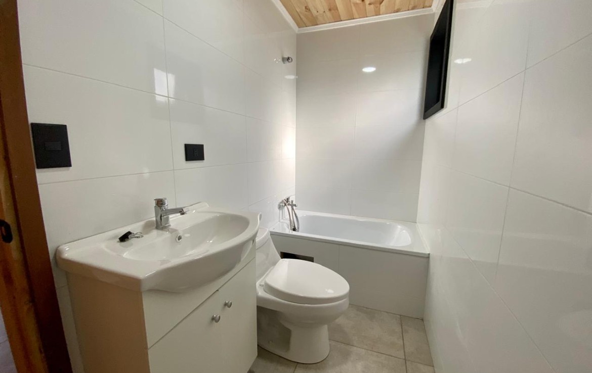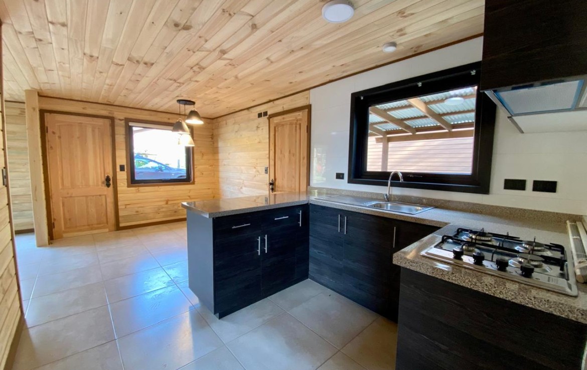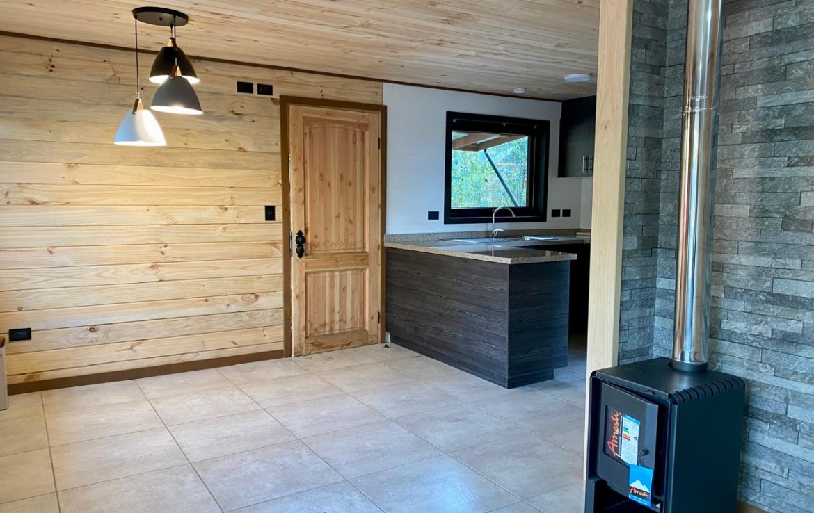 Living comedor, estufa combustión lenta, Cocina equipada con muebles, lava platos, cocina con encimera, horno eléctrico, calefón nuevo, 1 dormitorio amplio con closet, 1 baño completo.