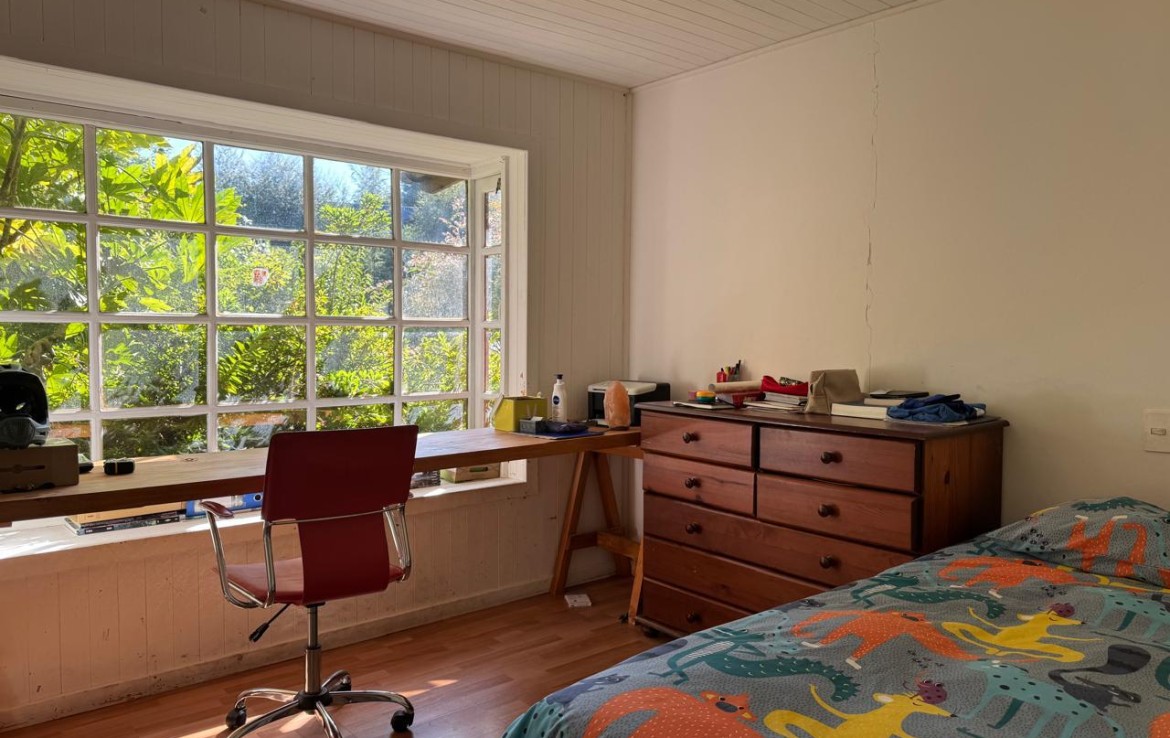 Tiene 109 m² construidos y 40m² de terraza en un terreno de 1.575m², el condominio es muy tranquilo y familiar, ubicado a tan solo 2Km del centro de la ciudad. La propiedad cuenta con hall de acceso, 4 dormitorios, 2 baños, living, comedor, cocina y logia.