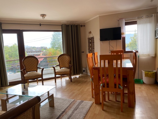 Departamento central, ubicado en el tercer piso con terraza con vista a calle general Urrutia, living, comedor muy soleado, cocina incorporada tres dormitorios principal en suite, 2 baños